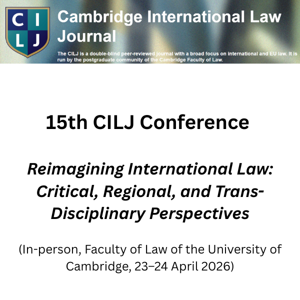 The Cambridge International Law Journal (‘CILJ’) is pleased to invite submissions of abstracts to be considered for presentations at the 15th Annual Conference of the CILJ.