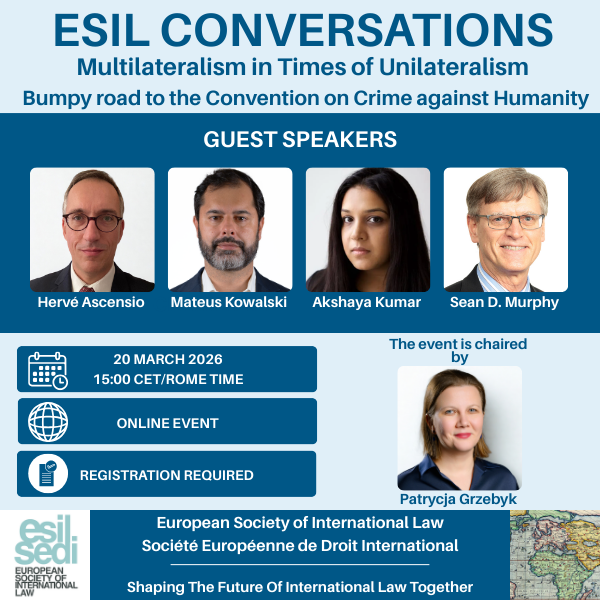Les Conversations SEDI sont une série d’événements en ligne à travers lesquels la Société européenne de droit international (ESIL-SEDI) vise à contribuer au débat sur le droit international.